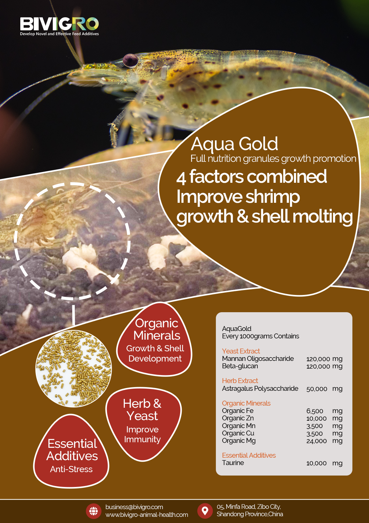 (4) Delivered in a sinking pellet format, it ensures shrimp have direct, easy access to these vital nutrients.