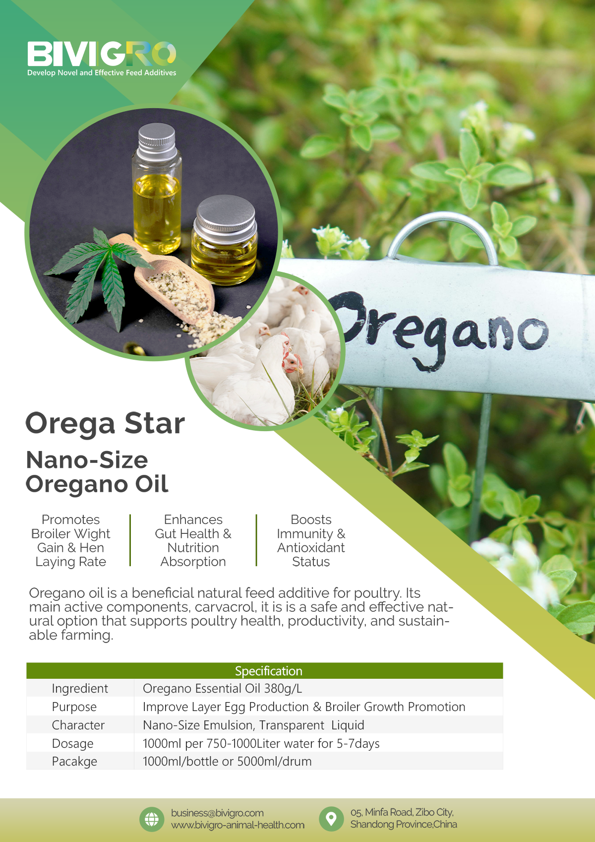 New generation, nano-enhanced liquid solution of concentrated, nano-emulsified oregano oil, which designed for the modern poultry farmer, this advanced herb oil delivers the potent benefits of oregano in its most bioavailable and effective form to directly drive growth in broilers and productivity in layers.