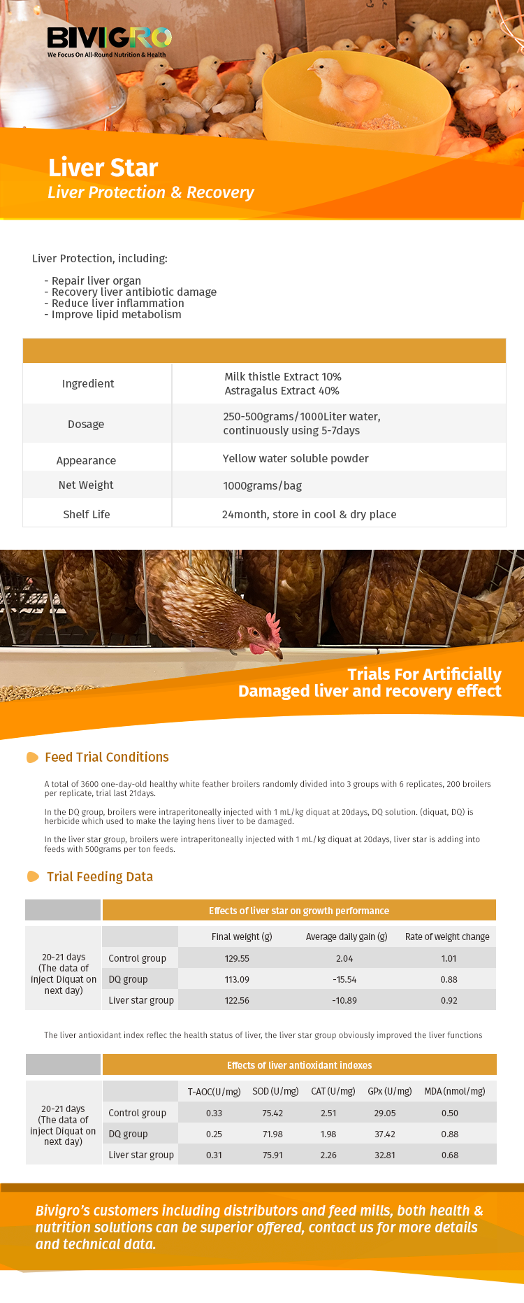 Liver Star: The silybum extract for poultry liver protection & recovery Related Produtcs AmiplusAmiplus: The multi amino acid chelated minerals liquid preparations EosproEospro: The nano essential oil to improve layer laying rate & broiler growth rate Herb StarHerb Star: The echinacea extract for anti-respiratory virus for poultry BiomixBiomix: The new type probiotic of clostridium butyricum for poultry BiomasterBiomaster: The classis combination of bacillus subtilis for poultry